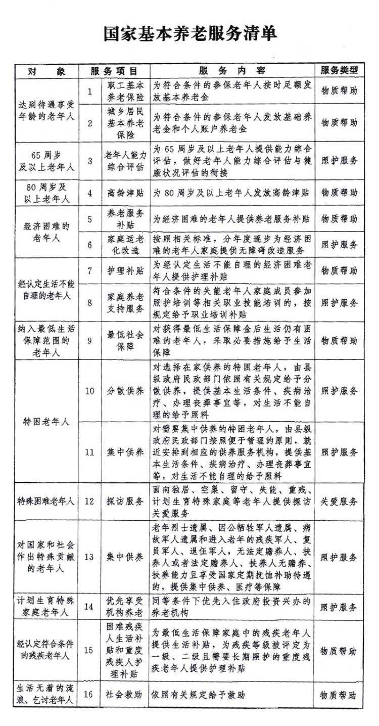 《意見》一大亮點,就是首次發布的《國家基本養老服務清單》。每一個老年人,都可以參照這份清單,了解自己能夠獲得的權利。
